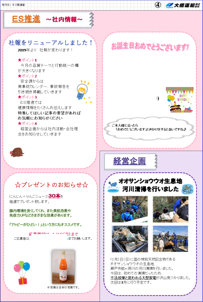 改善提案・改善項目・活動成果・来期の課題・CSRレポートを毎年12月末に提出