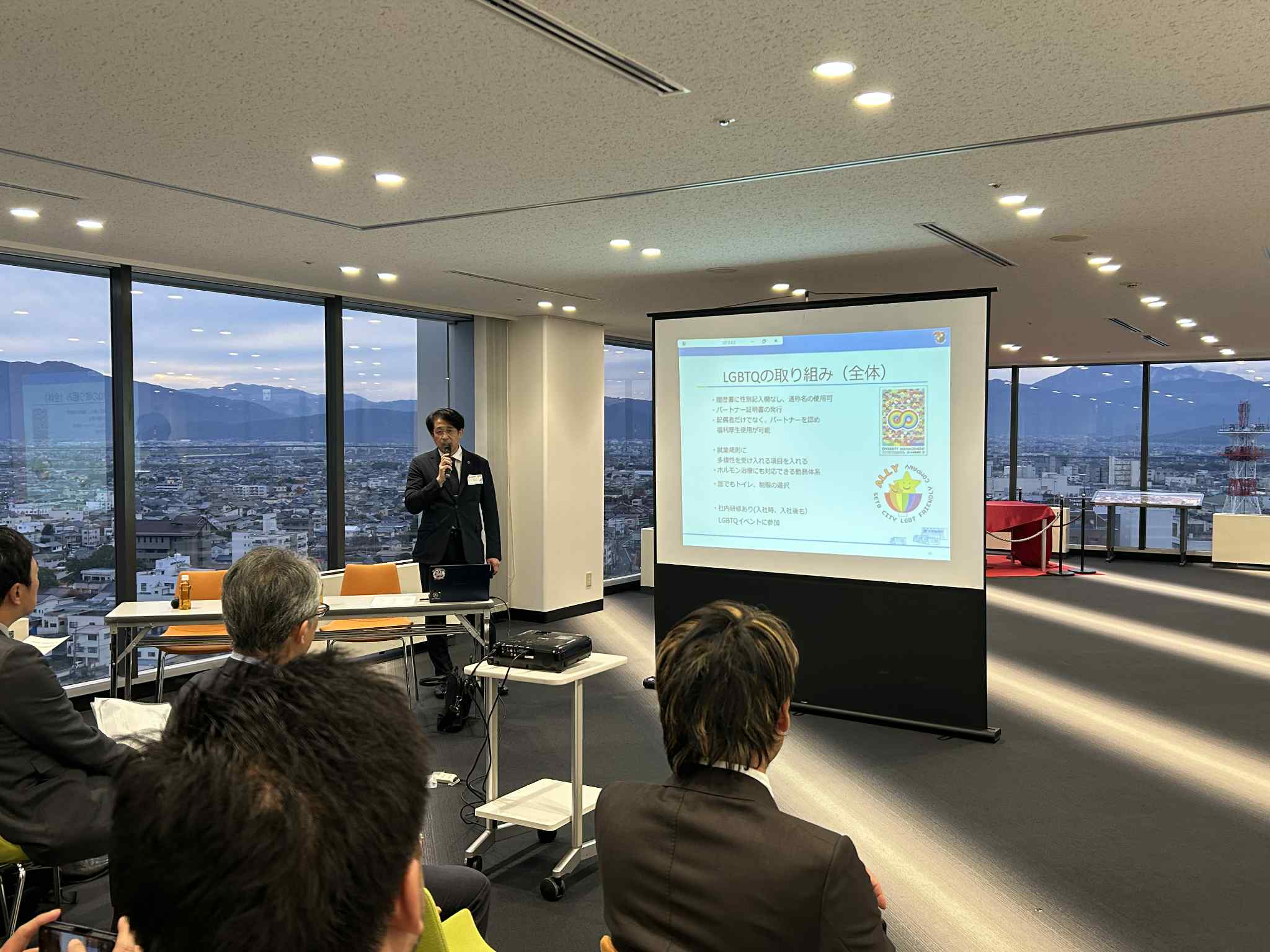 登壇では、弊社におけるダイバーシティ経営・健康経営・地域活動の取り組み事例を