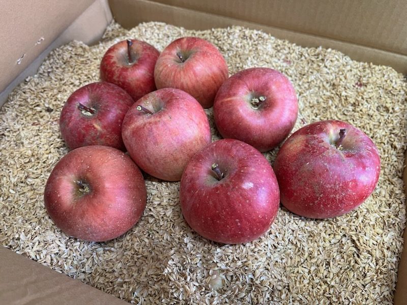 やまだい農園では「孫にも安心して食べさせたい」という想いから、有機肥料を中心に低農薬で栽培し、安全性と味を最優先にりんごを育てています。形は少々不格好ですが、自然の恵みを生かした本物の美味しさが特徴です。発送には籾殻を敷き詰め、鮮度保持と衝撃吸収を工夫しています。