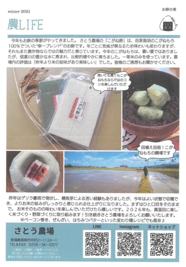 今回の「こがね餅」は、自家栽培のこがねもちを100%使用し、一等米のみを用いた単一ブレンド。昔ながらの杵つきで仕上げられたお餅です。